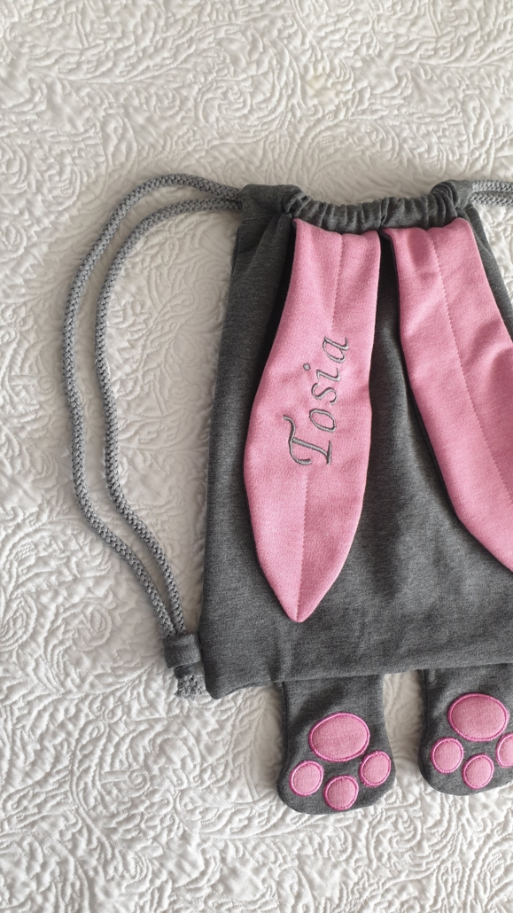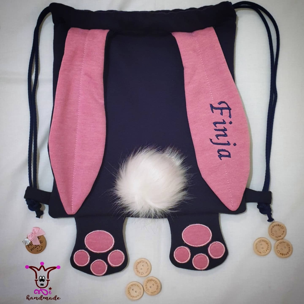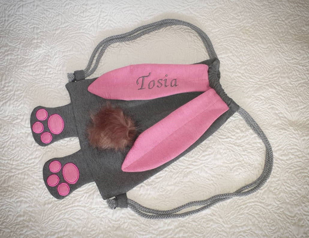 Ein süßer individuell erstell- und personalisierbarer Hasenrucksack, als tolles Geschenk für den Geburtstag, zu Ostern, oder sonstigen Anlass.