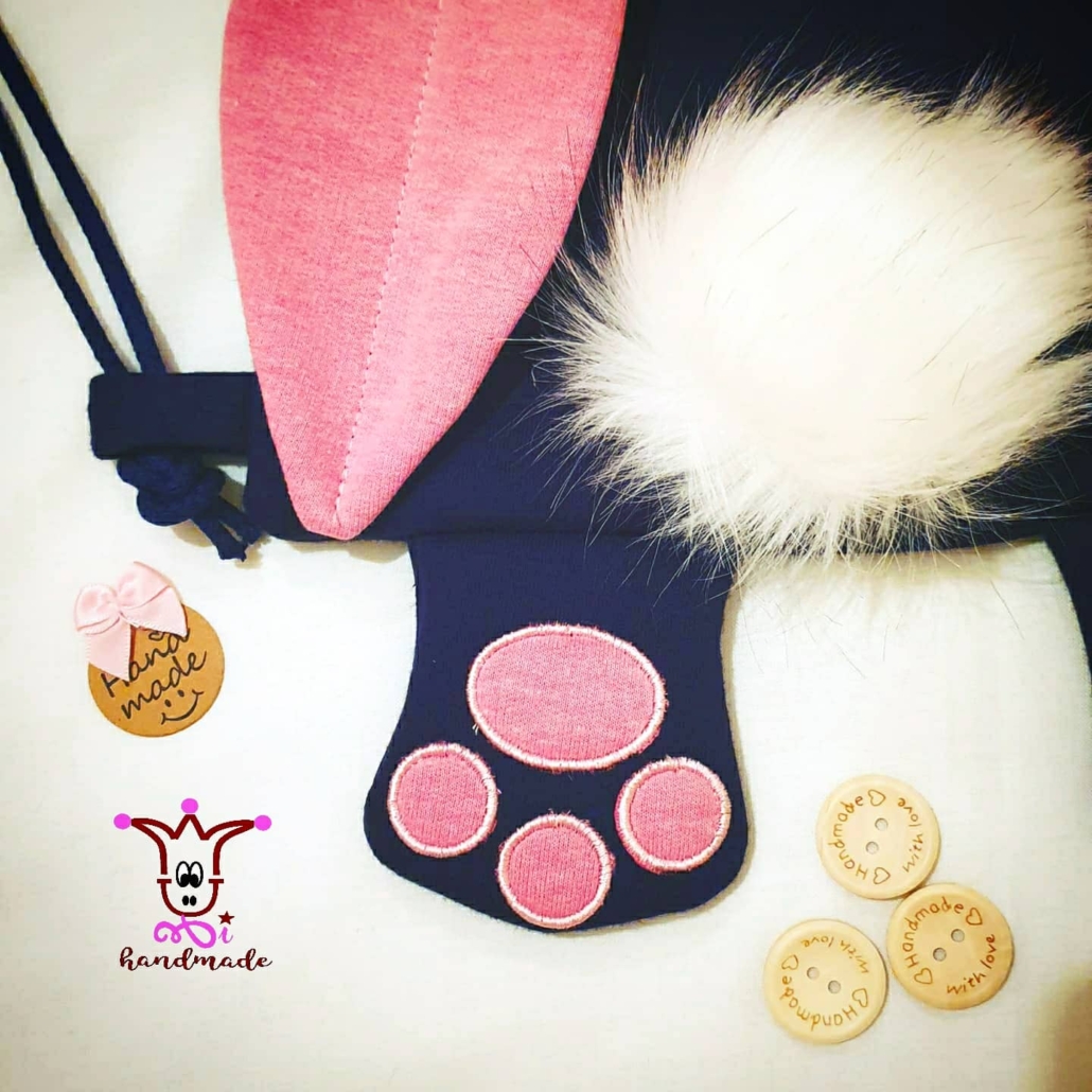Der Hasenrucksack wird aus weichem Kuschelsweat in liebevoller Handarbeit aus 65% Baumwolle, 35% Polyester (Öko Tex Standard 100) von uns genäht.