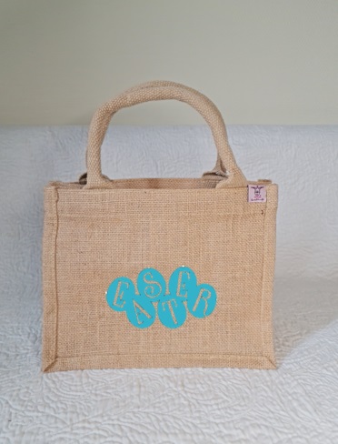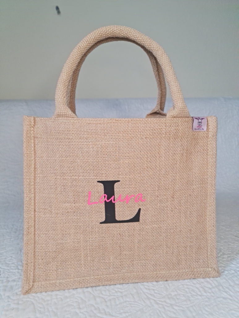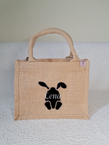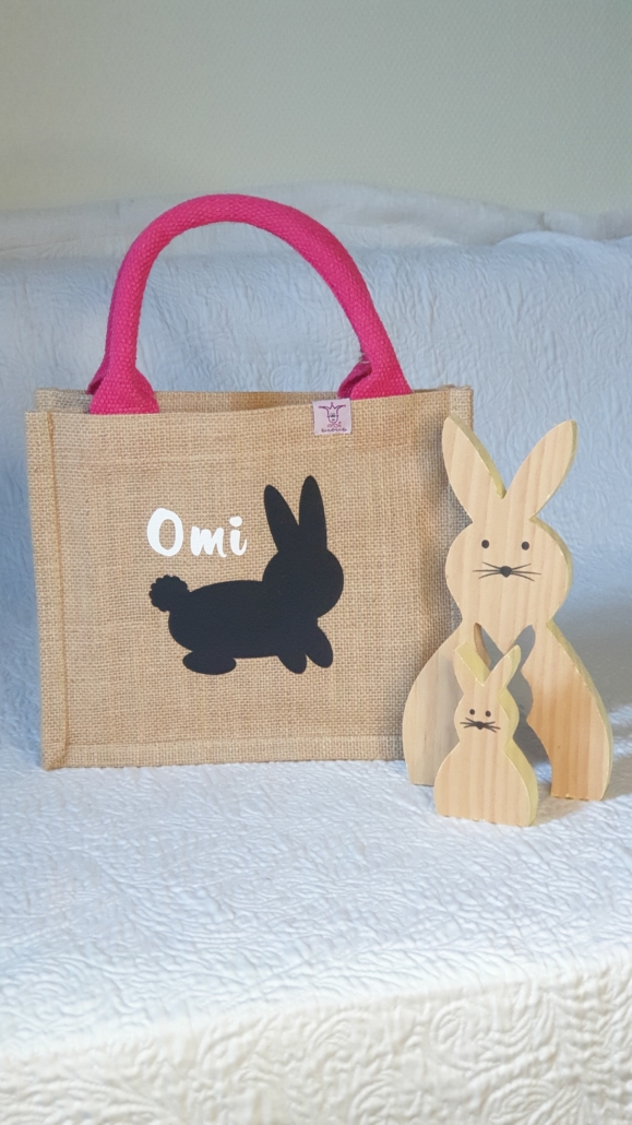 Kleine süsse Jute-Tasche, personalisiert, als kleines Mitbringsel, als Osternest, als Ostertasche und für viele weitere Zwecke nutzbar. Sie ist sowohl für Kinder wie für Erwachsene eine schöne Geschenkidee.