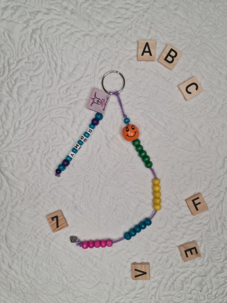 Die Perlen sind in Fünfergruppen angeordnet, um das Mengenverständnis für 5 zu schulen.