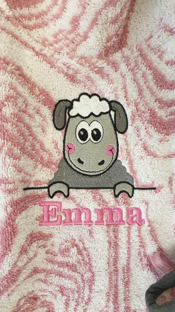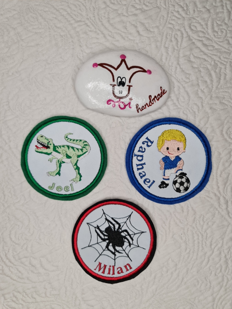 Wir besticken gerne Ihre Handtücher, Bademäntel, Stoffservietten (z.B. für den besonderen Anlass), Hemden (z.B.mit Logos, Initialen, Monogrammen…), Pullover, Kleidung, Vereinsklamotten, Kinder-T-Shirts (Geburtstag, Junggesellenabschied, Einschulung, Kindergarteneintritt…),Erwachsenen-T-Shirts (Geburtstag, Junggesellenabschied…) Taufkleid – was auch immer Sie gerne bestickt haben wollen mit Namen, Motiven, Bildern etc. nach Absprache.